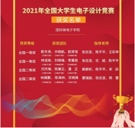 2018级电子信息工程的靳东贤、许晓航与2019级电子信息工程的欧贤培正争分夺秒,将自己脑海中的设计想法制作出来,不断地进行调试与改进设计作品,勇于拼搏的他们最终斩获2021年全国大学生电子设计竞赛一等奖!